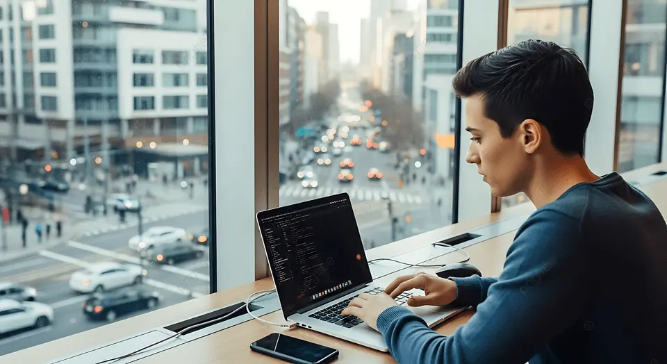 Ilustrasi Mahasiswa dengan leptopnya.